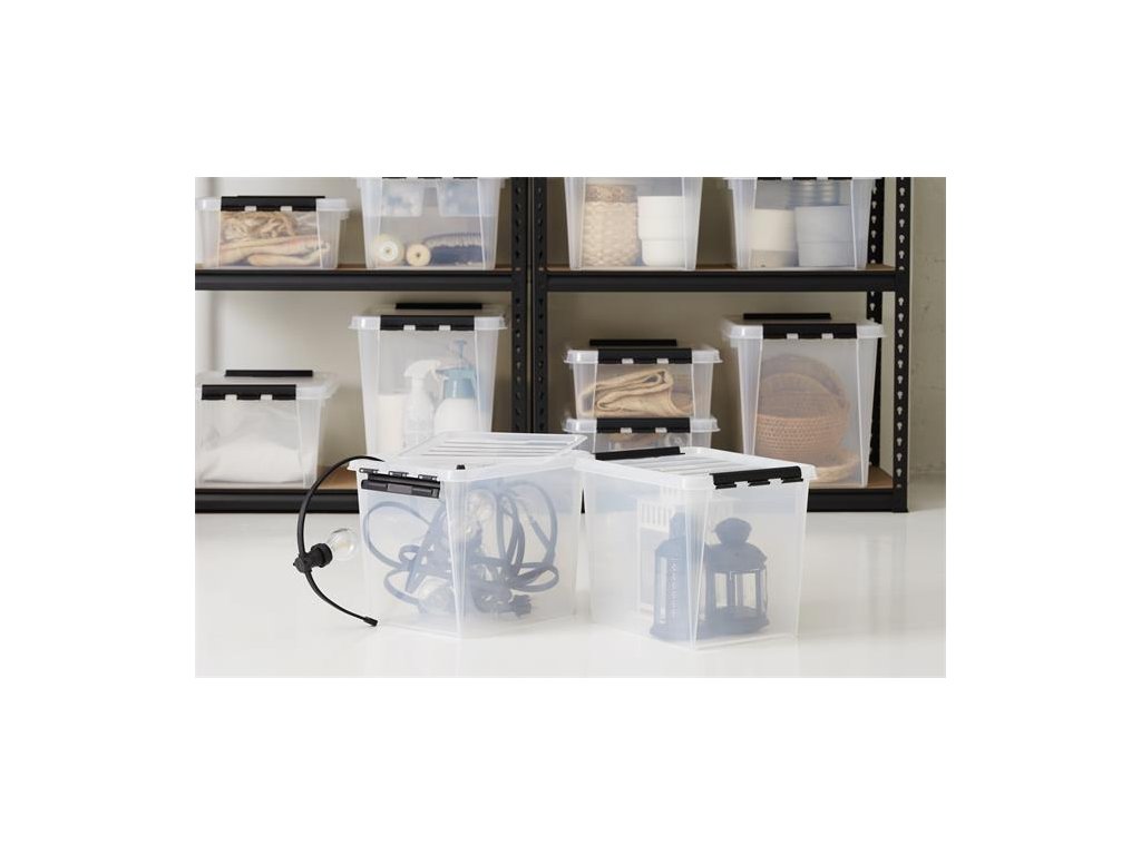 Úložný box, plastový, 25 l, čierne úchytky, SMARTSTORE "Classic 16", priehľadný