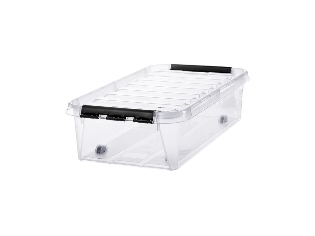 Úložný box, plastový, 31 l, čierne úchytky a kolieska, SMARTSTORE "Classic 35", priehľadný