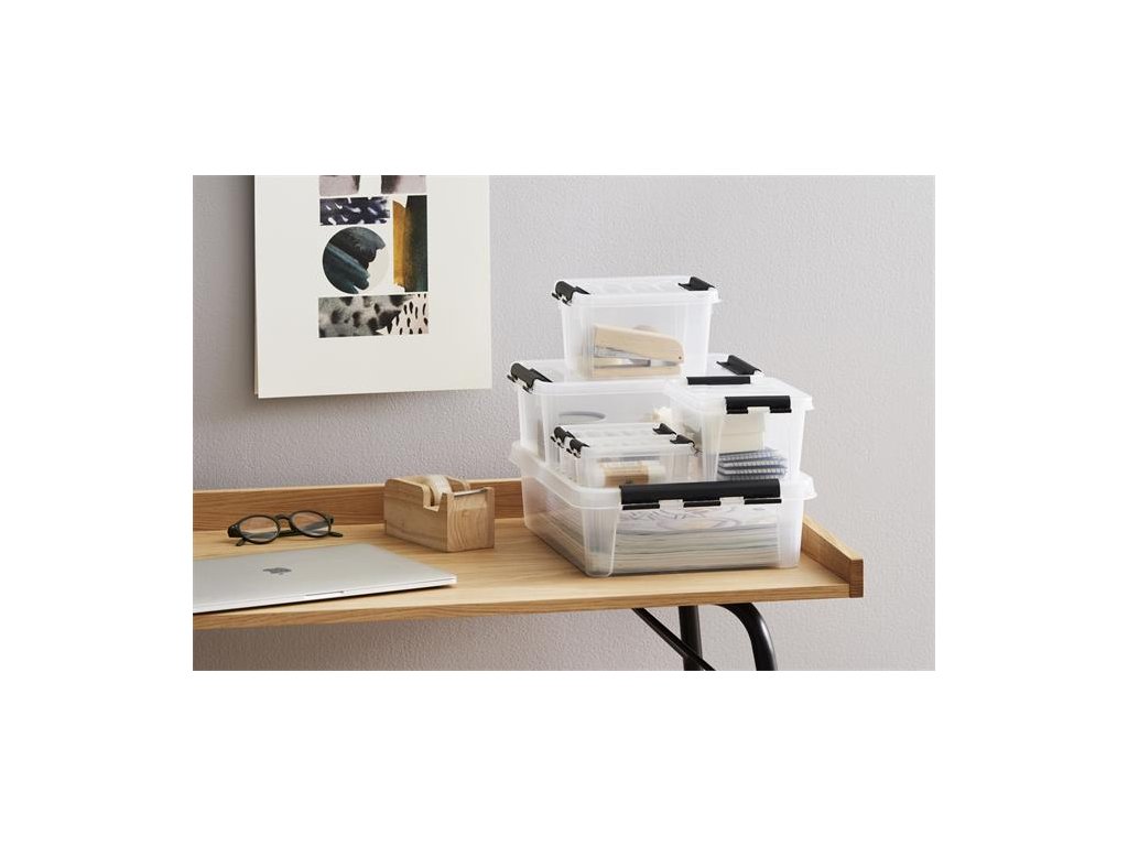 Úložný box, plastový, 8 l, čierne úchytky, SMARTSTORE "Classic 14", priehľadný