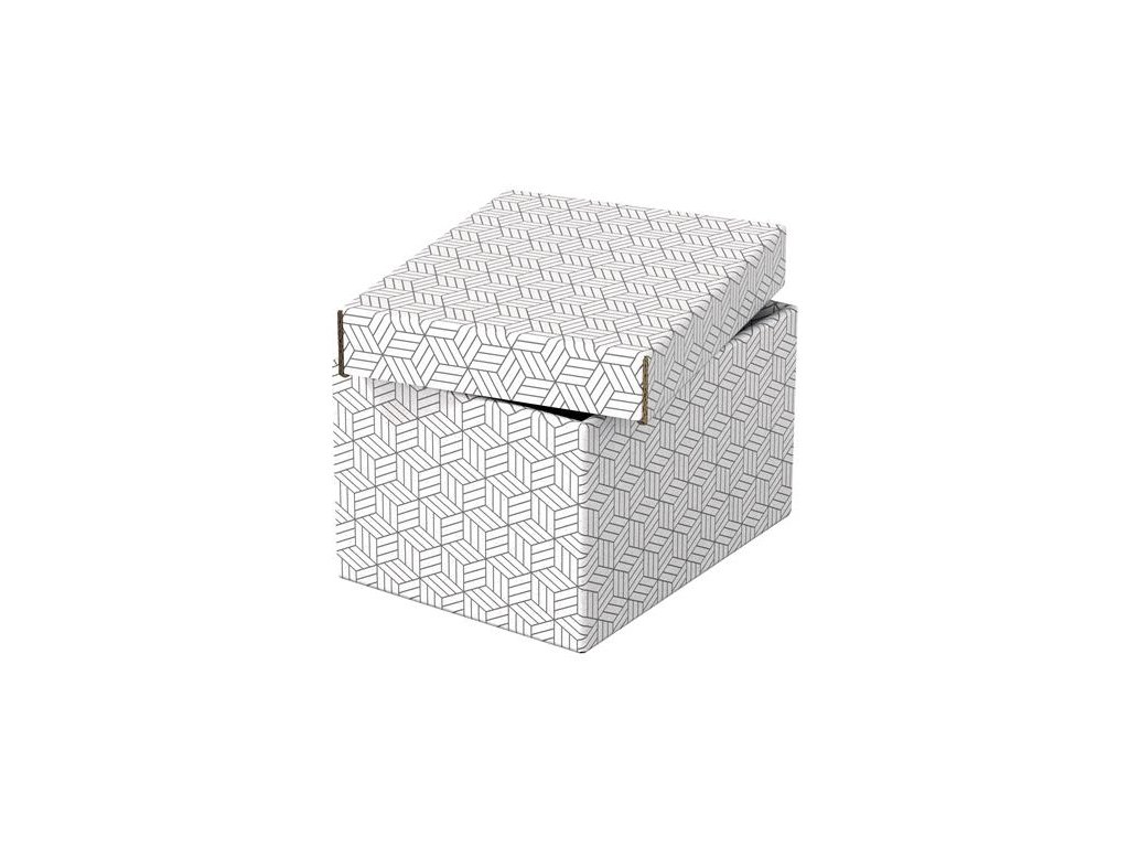 Súprava troch malých lepenkových úložných boxov s moderným a štýlovým geometrickým dizajnom. Ideálne na darčeky alebo na ukladanie drobností, ako sú tlačené dokumenty, obrázky atď. Možno používať samostatne alebo uložiť na policu. Použite box na zabalenie darčeka a obdarovaný ho potom môže použiť ako úložný box. Odnímateľné veko skryje obsah a ochráni ho pred prachom. Neutrálne farby a dizajn doplnia akýkoľvek štýl a box je vďaka nim možné použiť ako darček. Dodávajú sa zabalené naplocho a dajú sa rýchlo a ľahko zostaviť. Steny sa pri zostavovaní preložia cez seba, takže sú dvojnásobne pevné. Povrch možno utrieť. Vyrobené z pevnej a odolnej 100% recyklovanej a 100% recyklovateľnej vlnitej lepenky s certifikáciou FSC Obal je 100% recyklovaný a 100% recyklovateľný bez obsahu plastov. Rozmery: 200 mm x 150 mm x 255 mm Značka: ESSELTE Výrobca: Esselte Kft. Adresa: 1139 Budapest, Lomb u. 37-39. A ép. II. 8., Hungary Web: https://www.accobrands.com/brands/ Email: hungarymarketing@acco.comDodatočné parametre