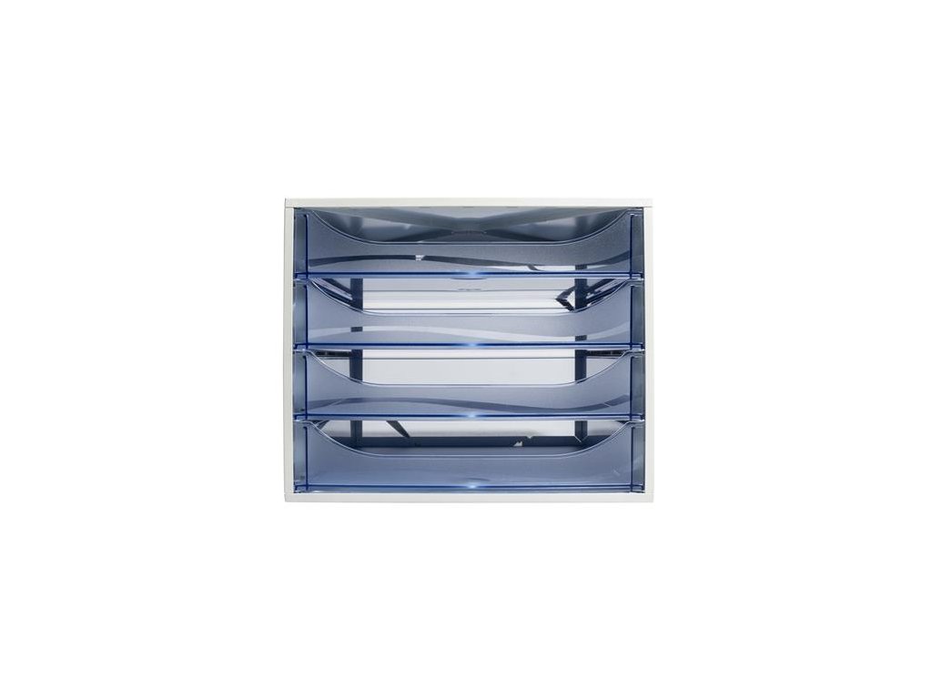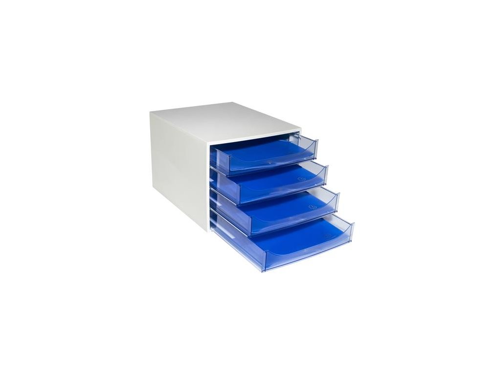 Úložný box na dokumenty, plastový, 4-zásuvkový, EXACOMPTA "Ecobox Linicolor", ľadovo modrý