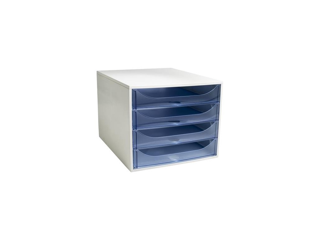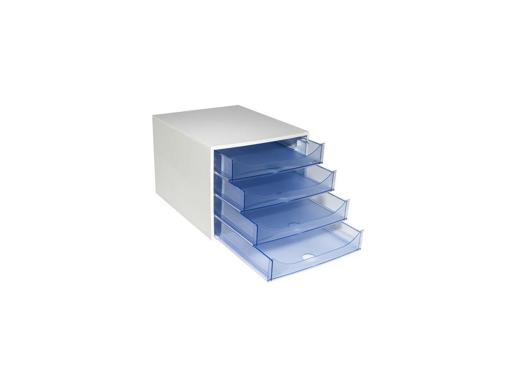 Ekologický úložný box na dokumenty s priehľadnými ľadovo modrými zásuvkami!-4 zásuvky na dokumenty formátu A4+