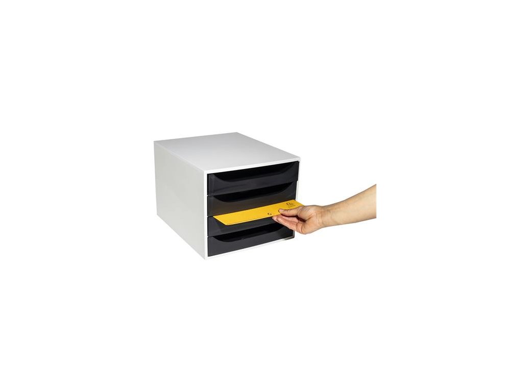 Úložný box na dokumenty, plastový, 4-zásuvkový, EXACOMPTA "Ecobox Office", sivá-čierna