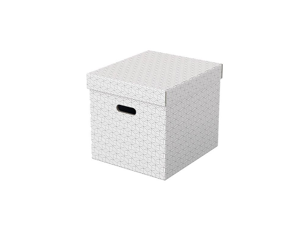 Súprava troch veľkých lepenkových úložných kociek s moderným a štýlovým geometrickým dizajnom. Ideálne na ukladanie dokumentov, pákových zakladačov, hračiek, kníh a ďalších väčších predmetov. Hodia sa na samostatné použitie a dokonale zapadnú aj do kockových úložných systémov, ako je kolekcia Ikea Kallax. Vďaka úchytom ich môžete podľa potreby ľahko prenášať z miestnosti do miestnosti. Odnímateľné veko skryje obsah a ochráni ho pred prachom. Neutrálne farby a dizajn doplnia akýkoľvek štýl vybavenia. Dodávajú sa zabalené naplocho a dajú sa rýchlo a ľahko zostaviť. Steny sa pri zostavovaní preložia cez seba, takže sú dvojnásobne pevné. Povrch možno utrieť. Vyrobené z pevnej a odolnej 100% recyklovanej a 100% recyklovateľnej vlnitej lepenky s certifikáciou FSC Obal je 100% recyklovaný a 100% recyklovateľný bez obsahu plastov. Rozmery: 320 mm x 315 mm x 365 mm Značka: ESSELTE Výrobca: Esselte Kft. Adresa: 1139 Budapest, Lomb u. 37-39. A ép. II. 8., Hungary Web: https://www.accobrands.com/brands/ Email: hungarymarketing@acco.comDodatočné parametre