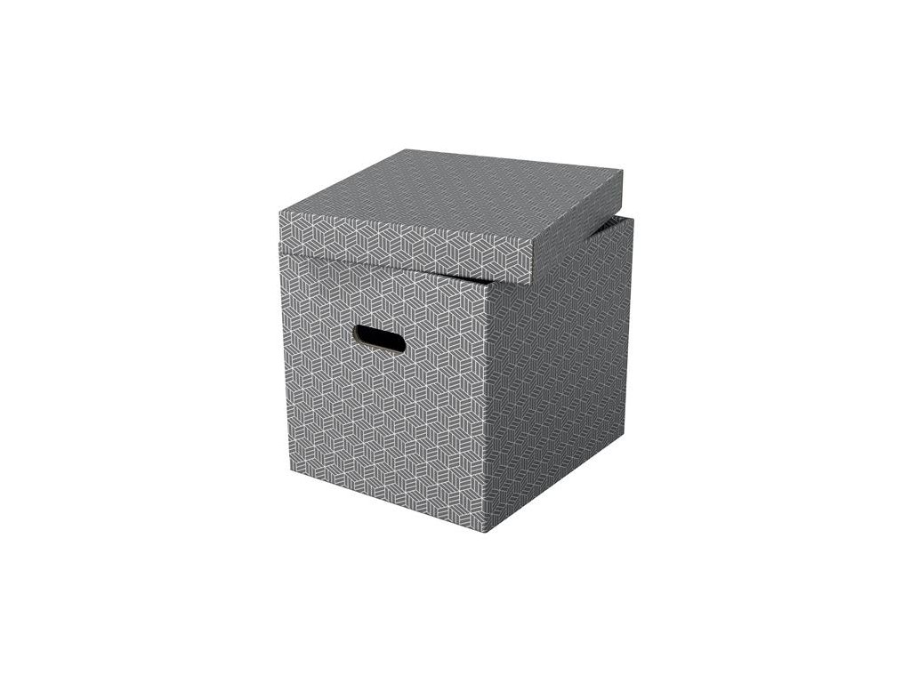 Súprava troch veľkých lepenkových úložných kociek s moderným a štýlovým geometrickým dizajnom. Ideálne na ukladanie dokumentov, pákových zakladačov, hračiek, kníh a ďalších väčších predmetov. Hodia sa na samostatné použitie a dokonale zapadnú aj do kockových úložných systémov, ako je kolekcia Ikea Kallax. Vďaka úchytom ich môžete podľa potreby ľahko prenášať z miestnosti do miestnosti. Odnímateľné veko skryje obsah a ochráni ho pred prachom. Neutrálne farby a dizajn doplnia akýkoľvek štýl vybavenia. Dodávajú sa zabalené naplocho a dajú sa rýchlo a ľahko zostaviť. Steny sa pri zostavovaní preložia cez seba, takže sú dvojnásobne pevné. Povrch možno utrieť. Vyrobené z pevnej a odolnej 100% recyklovanej a 100% recyklovateľnej vlnitej lepenky s certifikáciou FSC Obal je 100% recyklovaný a 100% recyklovateľný bez obsahu plastov. Rozmery: 320 mm x 315 mm x 365 mm Značka: ESSELTE Výrobca: Esselte Kft. Adresa: 1139 Budapest, Lomb u. 37-39. A ép. II. 8., Hungary Web: https://www.accobrands.com/brands/ Email: hungarymarketing@acco.comDodatočné parametre