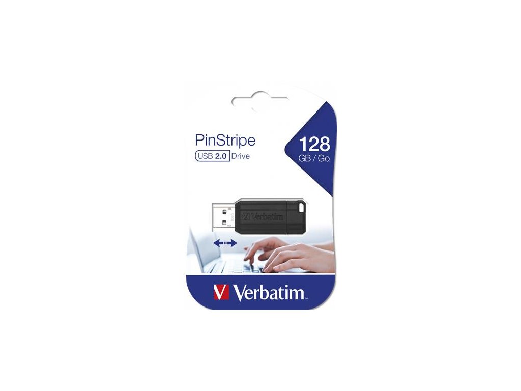 USB kľúč, 128GB, USB 2.0, 10/4MB/sec, VERBATIM "PinStripe", čierny