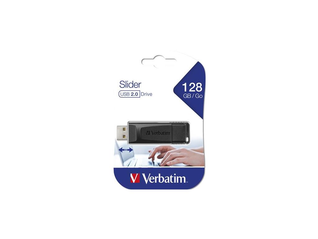 USB kľúč, 128GB, USB 2.0, VERBATIM "Slider", čierny
