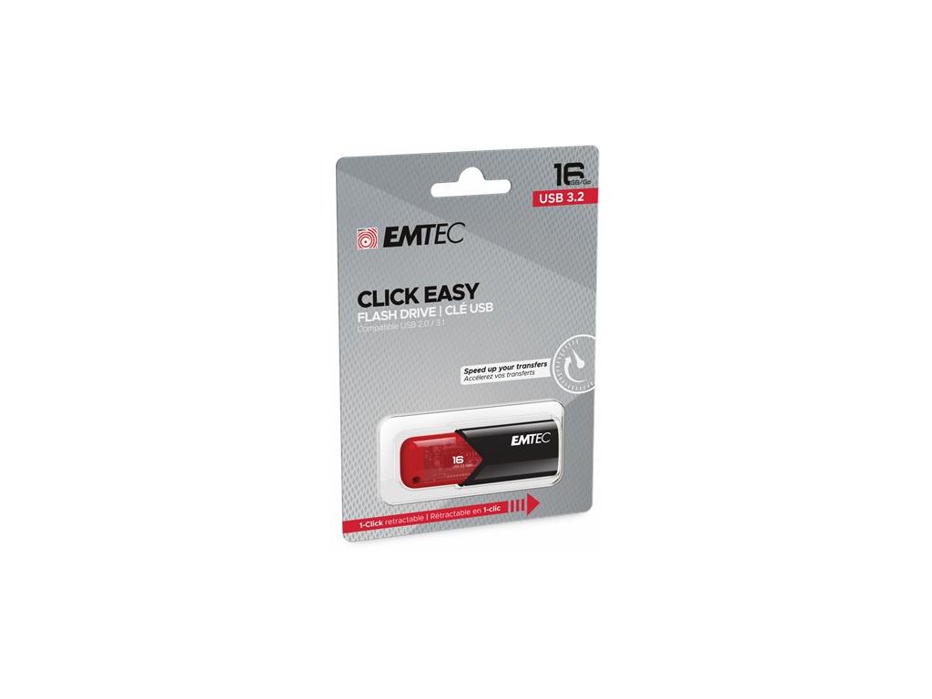 USB kľúč, 16GB, USB 3.2, EMTEC "B110 Click Easy", čierna-červená