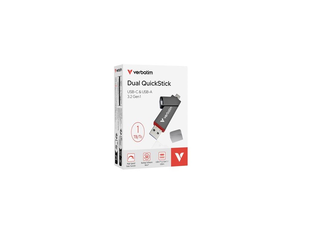 VERBATIM Dual QuickStick ponúka rýchlosť a výkon SSD v kompaktnej podobe USB disku. Jeho konštrukcia s dvoma rozhraniami, ktorá je vybavená konektormi USB-A i USB-C, zabezpečuje bezproblémovú kompatibilitu s rôznymi zariadeniami, od starších notebookov až po najnovšie smartfóny a tablety.-kompaktné, robustné a odolné prevedenie -rýchle a praktické úložné riešenie pre každodenné používanie - balenie obsahuje aj software pre zálohovovanie Nero (je kompatibilný iba s OS Windows) Požiadavky na systém: Windows 11, 10, 8 Mac OS X 14 alebo vyššie, Android 4.0 alebo vyššie Technické dáta -napájanie: USB-port -USB pripojenie: USB-A / USB-C -rozhranie: USB 3.2 Gen 1 -formát: M.2 -rýchlosť čítania: až 550 MB/s -rýchlosť zápisu: až 500 MB/s -materiál puzdra: zliatina zinku -hmotnosť: cca. 32 g -rozmery: 81,5 mm x 18 mm x 10,8 mm (D × Š × V) -prevádzková teplota: 0° – 40° C -teplota skladovania: -20°C – 70°C obsah balenia: Verbatim Dual QuickStick USB-C/USB-A Flash Drive Nero Backup softver (nie je kompatibilný s OS Mac), manuálZnačka: VERBATIM