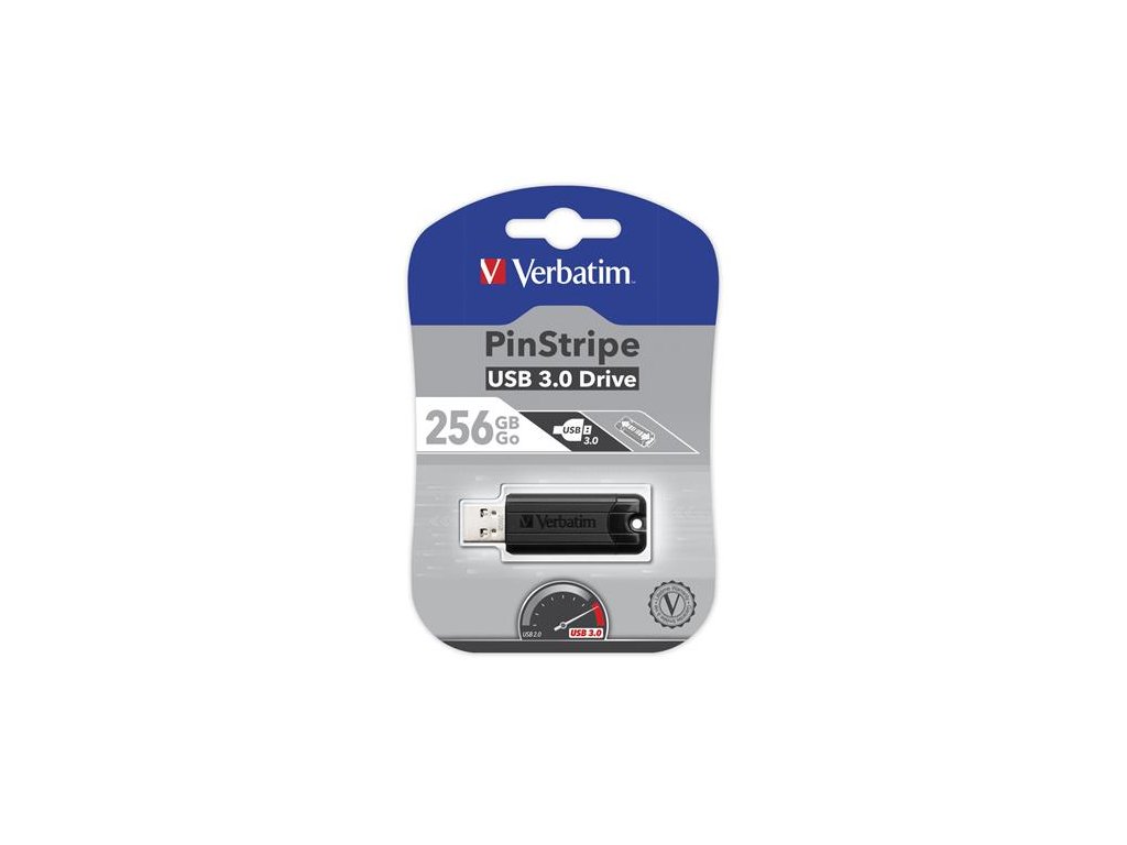 USB kľúč, 256GB, USB 3.2, VERBATIM "Pinstripe", čierna