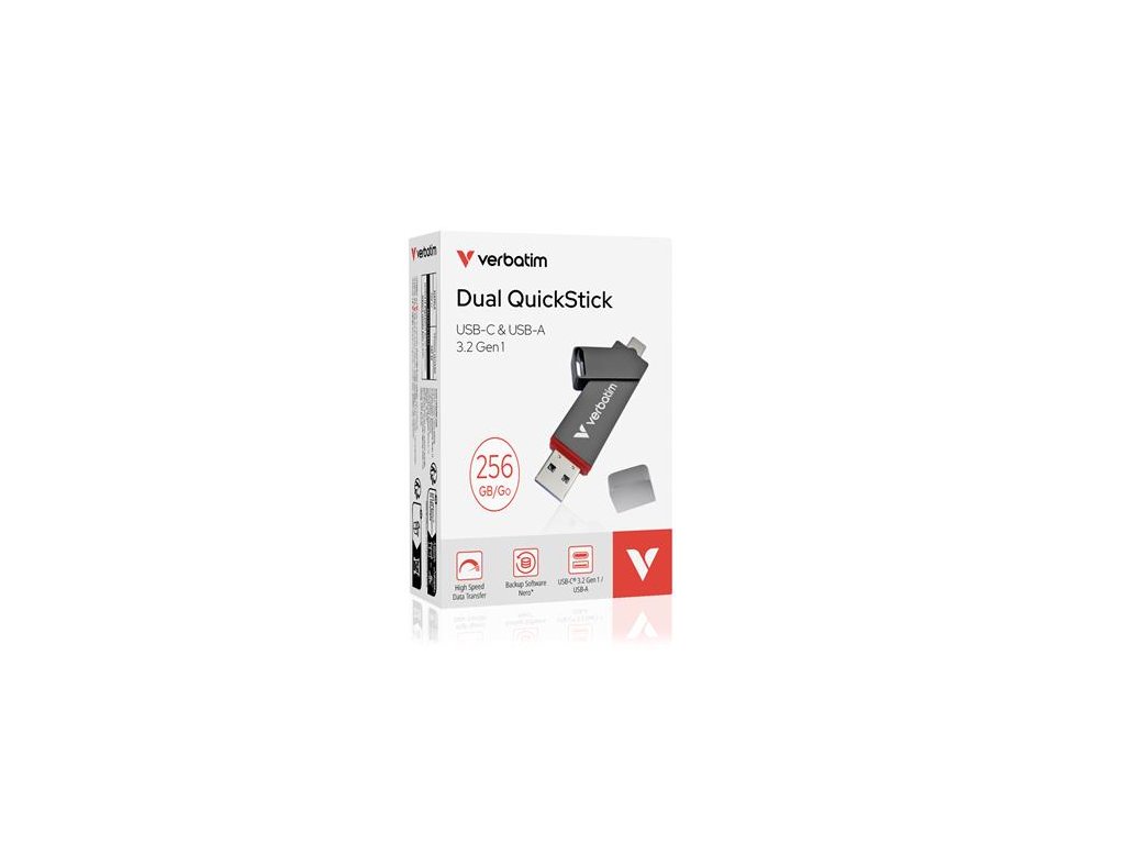 USB kľúč, 256GB, USB-A/C 3.2 Gen1, VERBATIM "Dual QuickStick", čierny