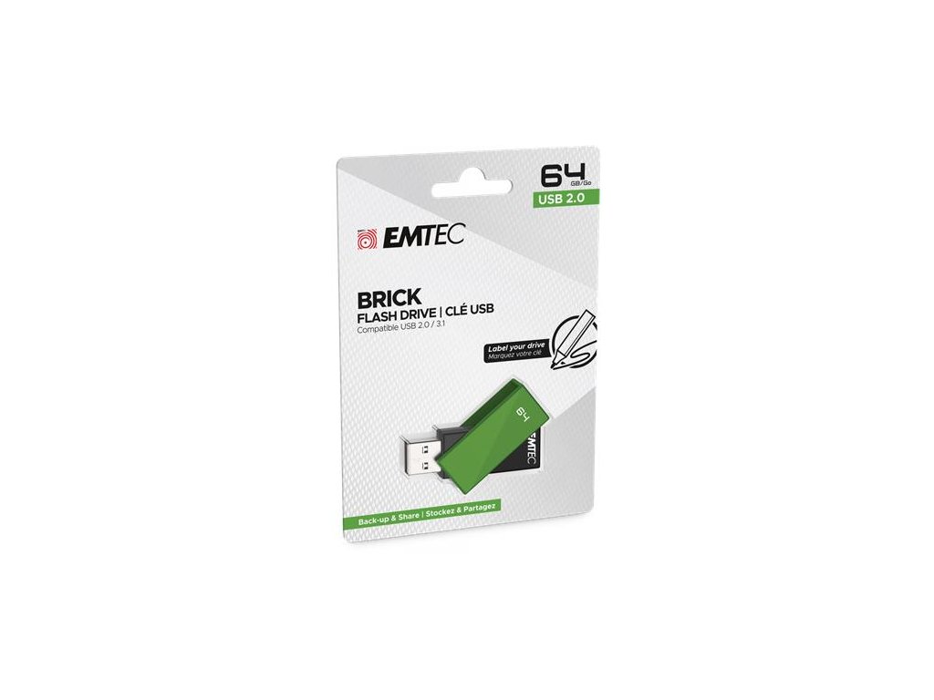 USB kľúč, 64GB, USB 2.0, EMTEC "C350 Brick", zelená