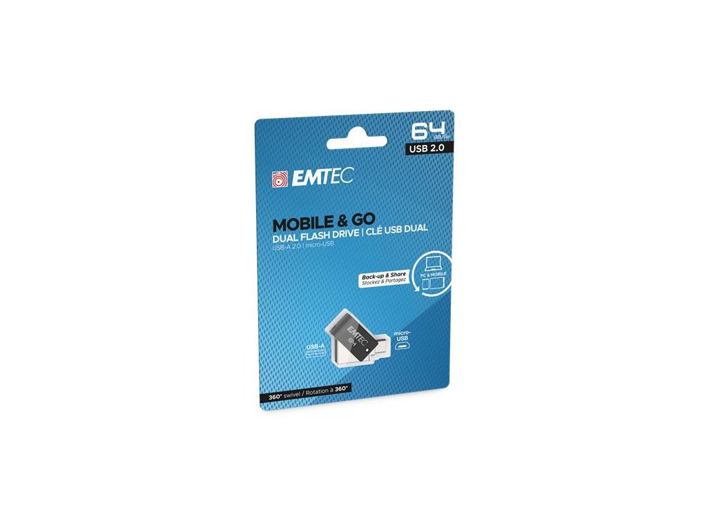 USB kľúč, 64GB, USB 2.0, USB-A/microUSB, EMTEC "T260B Mobile&Go"