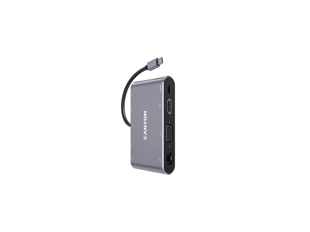 CANYON - elegantné doplnky v kombinácii s kvalitou a spoľahlivosťou. -8 portov v jednom zariadení -hliníkové puzdro -Ethernet: 1000 Mbps -HDMI: 4K Ultra HD -3 × USB-A 3.0 -Prenos dát VGA -USB-C PD nabíjanie, 100W -3,5 mm audio jack, podporuje výstup zvuku -kompatibilné so systémami Mac OS, Windows OS - záruka 2 rokyDodatočné parametre