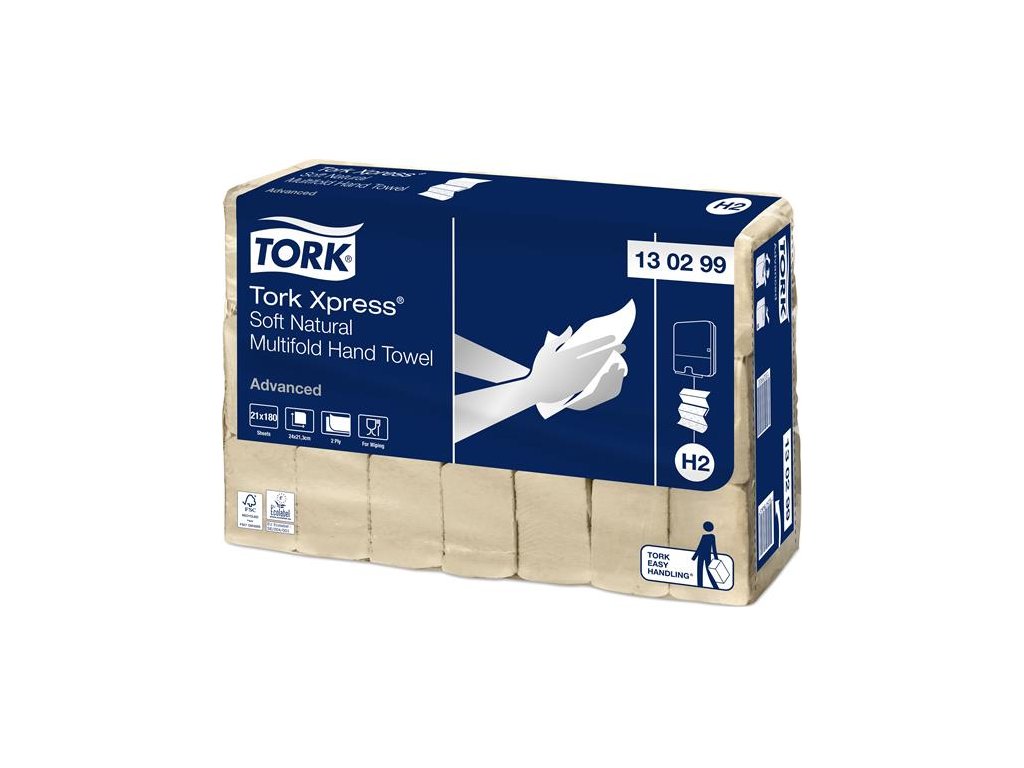 Utierky, Interfold ohyb, 2-vrstvové, 180 útržkov, H2 systém, Advanced, TORK "Xpress® Soft Multifold", prirodzená