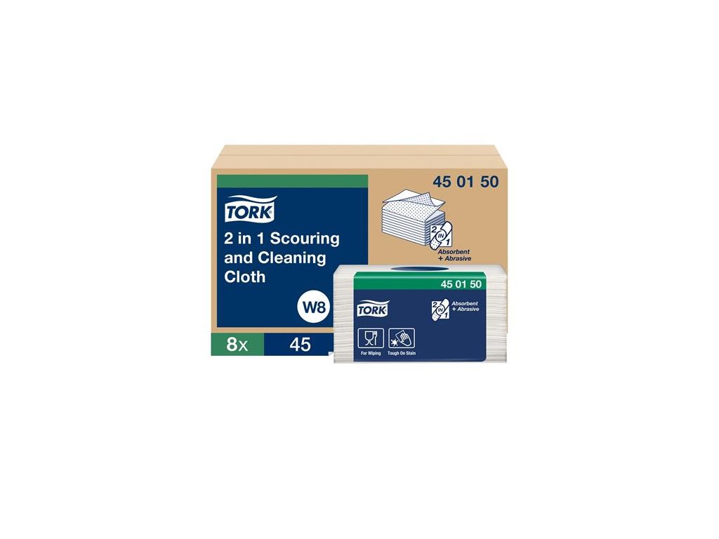 Tork utierky 2 v 1 na drhnutie a čistenie sú abrazívne a absorpčné utierky určené na efektívne upratovanie. Pri čistení odolných nečistôt, napríklad v kuchynskom prostredí, nepoškriabu žiadny povrch. Utierky môžete opláchnuť a znova použiť a sú kompatibilné s bežnými čistiacimi prostriedkami.