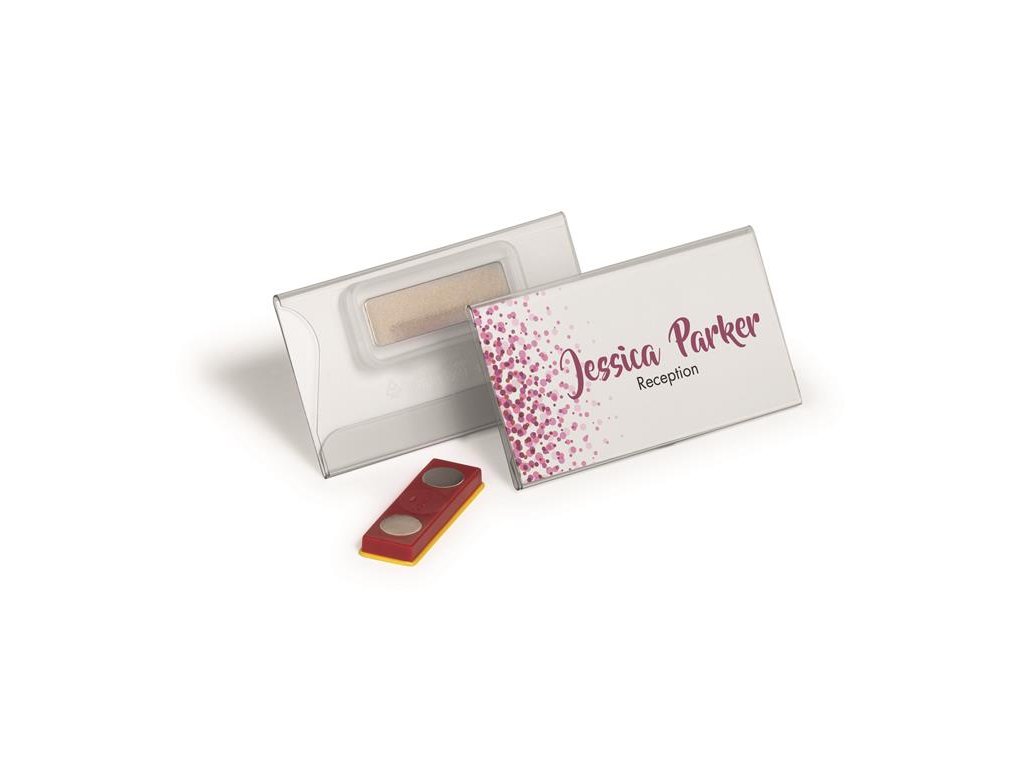 Elegantná a praktická visačka. - vhodná najmä pre ľudí, ktorí sa veľa pohybujú, napr. na konferenciách a veľkých podujatiach - špecifické zapínanie, ktoré zabraňuje otáčaniu, skĺznutiu alebo uvoľneniu menovky pri nosení - jednoduchý nápis pomocou bezplatného softvéru DURAPRINT®: duraprint.eu - jednoduchá oprava - nepoškodzuje materiál - silný, stabilný magnet - rozmery: 75 x 40 mmDodatočné parametre