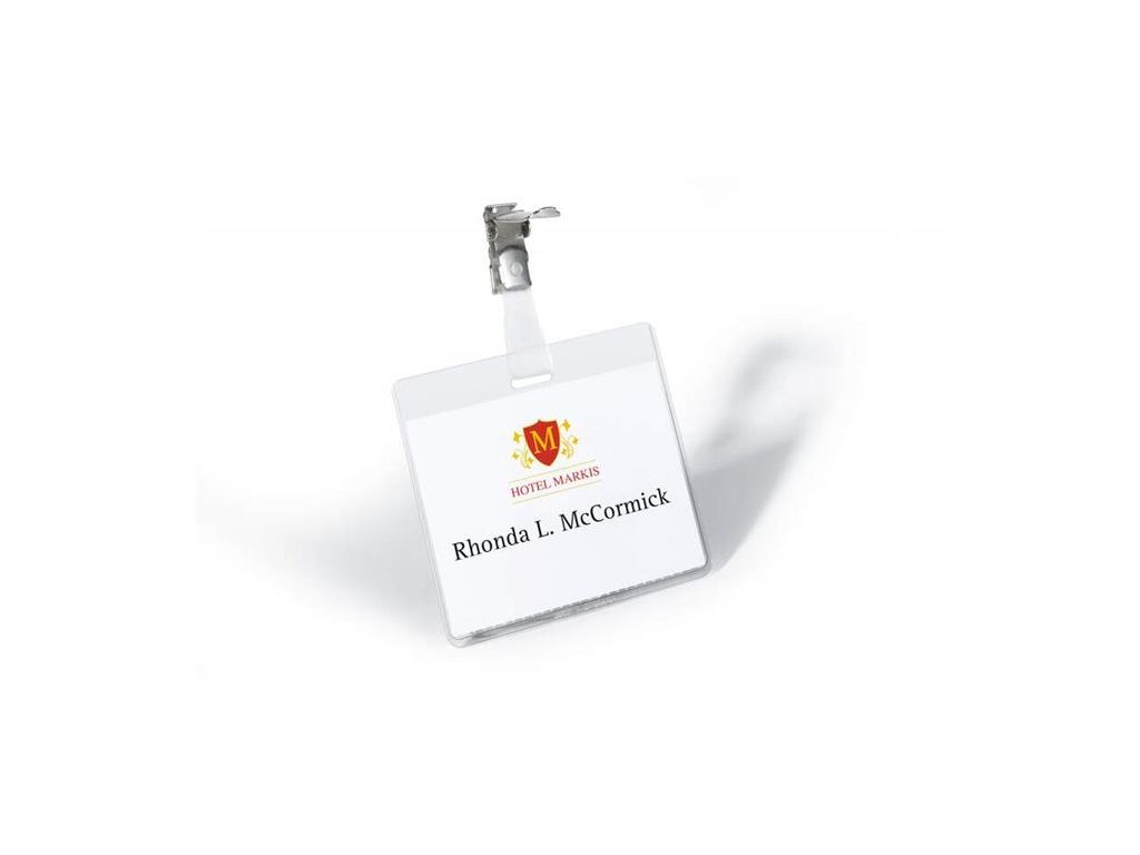Použitie: na konferenciách a väčších podujatiach, kde sa menovky často nevracajúUpevnenie pomocou klipu