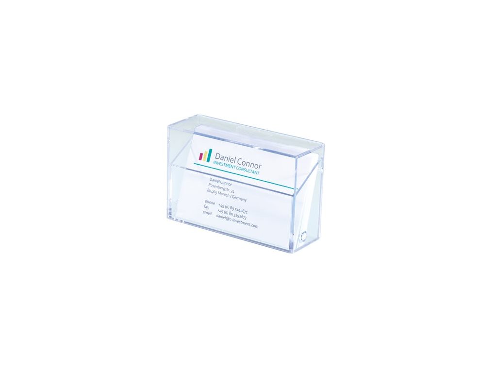 - priehľadný akrylový materiál - uzatvárateľné - na uchovávanie 100 ks vizitiek s rozmermi 56 x 86 mm - rozmery: 60 x 90 x 30 mm Značka: SIGEL Výrobca: SIGEL GmbH Adresa: Baeumenheimer Strasse 10, 86690 Mertingen, Germany Web: www.sigel-office.com Email: sandra.geist@sigel.deDodatočné parametre