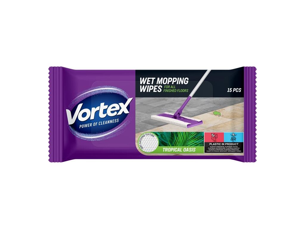 Vlhčené utierky na podlahu, 15 ks, VORTEX, s tropickou vôňou