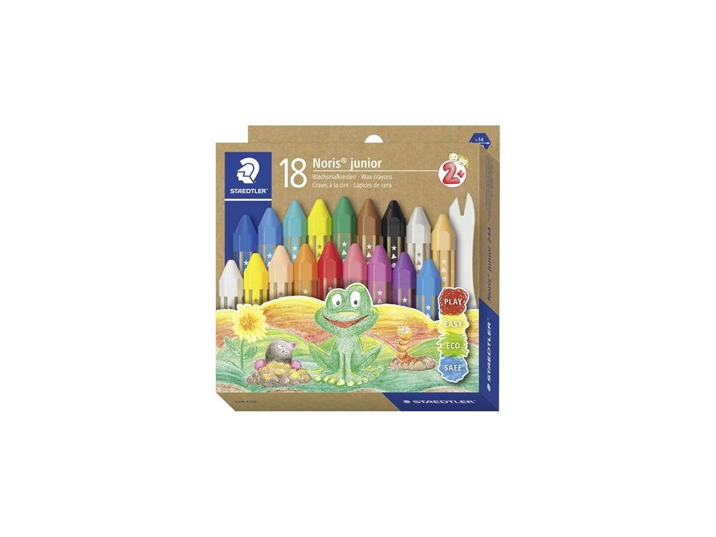 Voskovky Staedtler Noris Junior sú ideálnou voľbou pre žiakov, ktorí sa učia písať a kresliť, odporúčame používať od 2 rokov. kvalitné voskovky z prírodného včelieho vosku rovnomerné a jasné farby odporúčané pre rôzne techniky vysoká odolnosť proti zlomeniu šesťhranný tvar pre ľahké a pohodlné písanie a kreslenie, a zabraňuje skotúľaniu voskoviek zo stola papierový obal s menovkou priemer: 14 mm Značka: STAEDTLER Výrobca: STAEDTLER SE Adresa: Moosäckerstr. 3 , 90427 Nuremberg, Germany Web: http://www.staedtler.com Email: https://www.staedtler.com/intl/en/service/contact/Dodatočné parametre