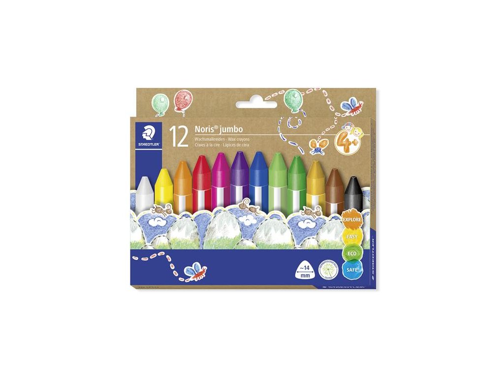 Noris® jumbo - Produkty, ktoré rastú s dieťaťom. Rad Noris jumbo umožňuje malým deťom objavovať vlastnú kreativitu. Tento produktový rad je hravé objavovanie, jednoduchá manipulácia, príp synonymom pre ekologické a bezpečné produkty (EXPLORE - EASY - ECO - SAFE). - hrubá voskovka s ergonomickým trojhranným dizajnom - ideálna pre malé ručičky a prvé kresby aj na dlhšiu dobu - žiarivé farby, ktoré umocňujú úspech malých umelcov - vhodná na rôzne techniky kreslenia - poťah papiera pre hygienickú manipuláciu, ktorá môže byť označené menom - priemer: 14 mm Značka: STAEDTLER Výrobca: STAEDTLER SE Adresa: Moosäckerstr. 3 , 90427 Nuremberg, Germany Web: http://www.staedtler.com Email: https://www.staedtler.com/intl/en/service/contact/Dodatočné parametre