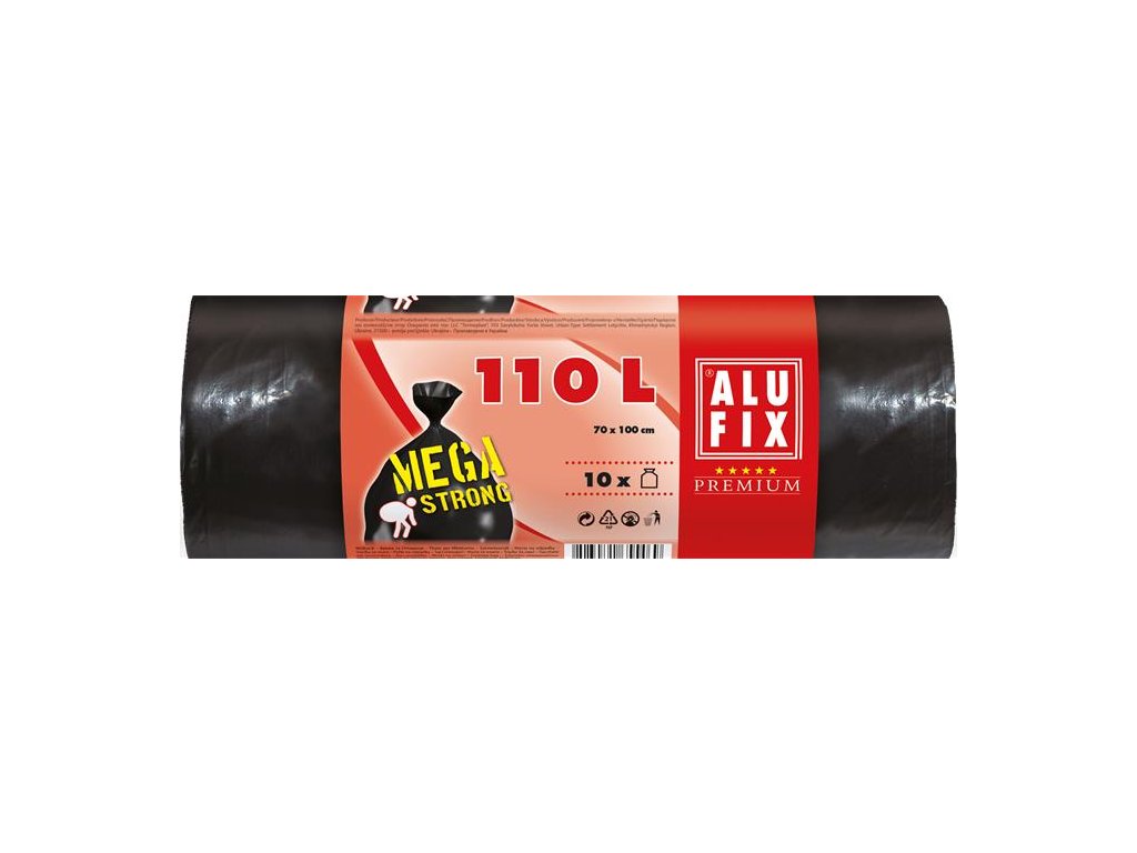 Vrecia na odpadky, extra silné, 110 l, 10 ks, 70x110 cm, 80 µ, ALUFIX, čierna