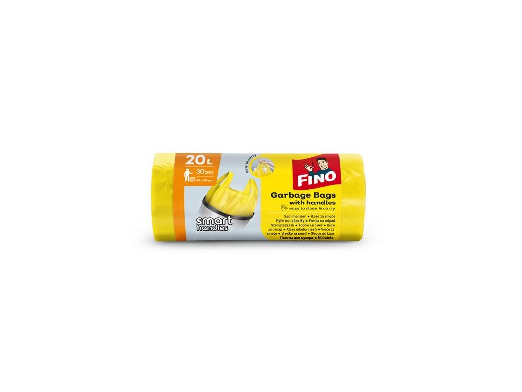 Vrecia na odpadky, s uškom, 20 l, 30 ks, 44x49 cm, 7 µ, FINO "Smart handles", žltá