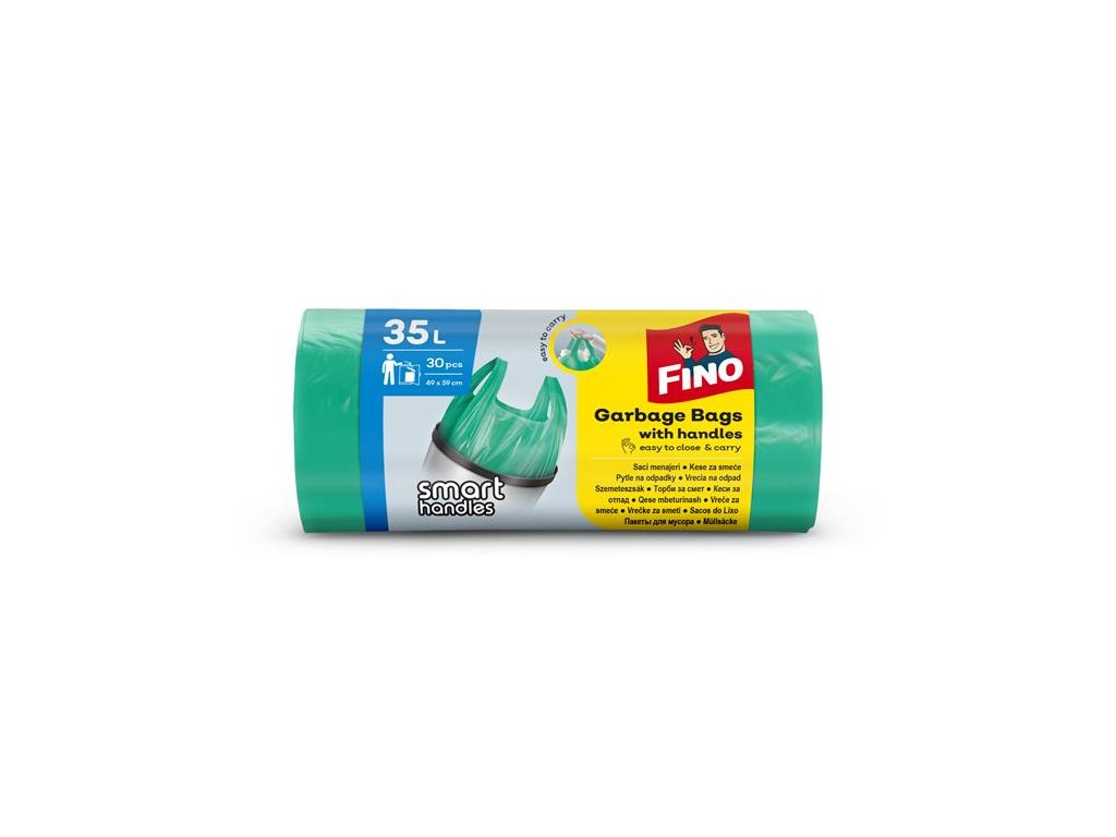 Vrecia na odpadky, s uškom, 35 l, 30 ks, 49x59 cm, 8 µ, FINO "Smart handles", zelená