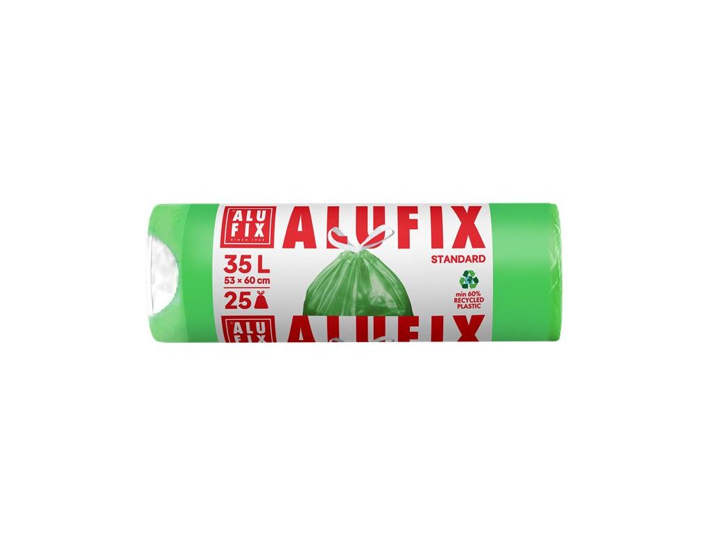 Vrecia na odpadky, zaťahovacie, 35 l, 25 ks, 53x60 cm, 15 µ, ALUFIX, zelená