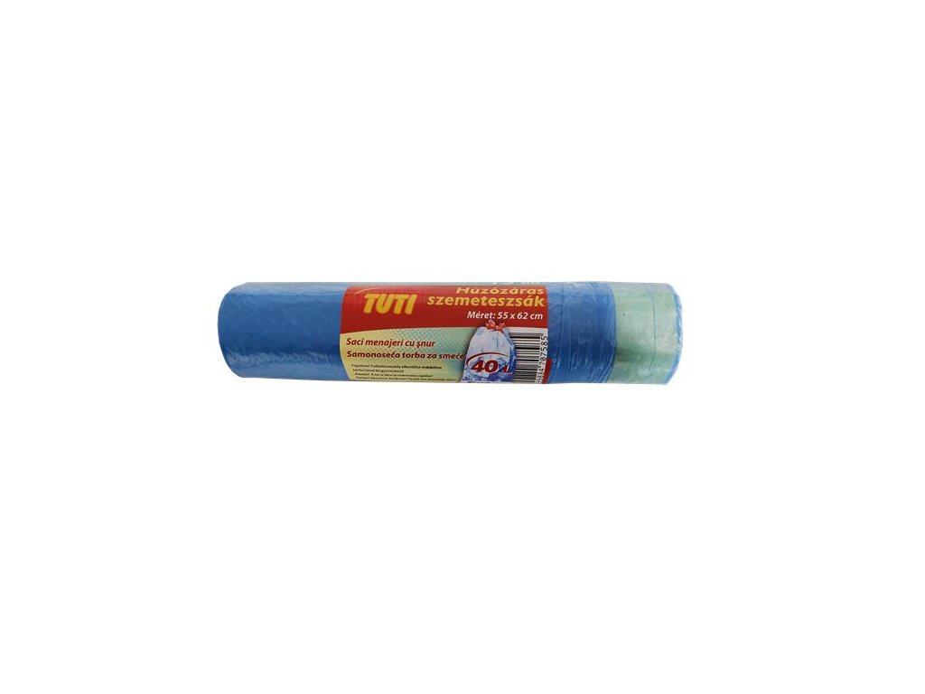 Vrecia na odpadky, zaťahovacie, 40 l, 15 ks, 55x62 cm, 14 µ, TUTI, modrá