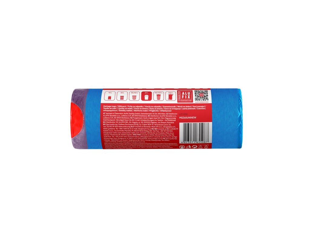 Vrecia na odpadky, zaťahovacie, 60 l, 15 ks, 64x71 cm, 26 µ, ALUFIX, modrá