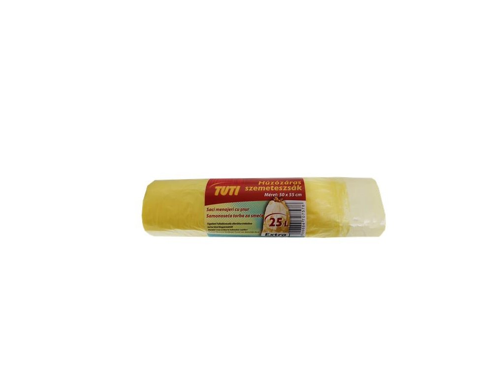 Vrecia na odpadky, zaťahovacie 25 l, 20 ks, 50x55 cm, 12 µ, TUTI, žltá