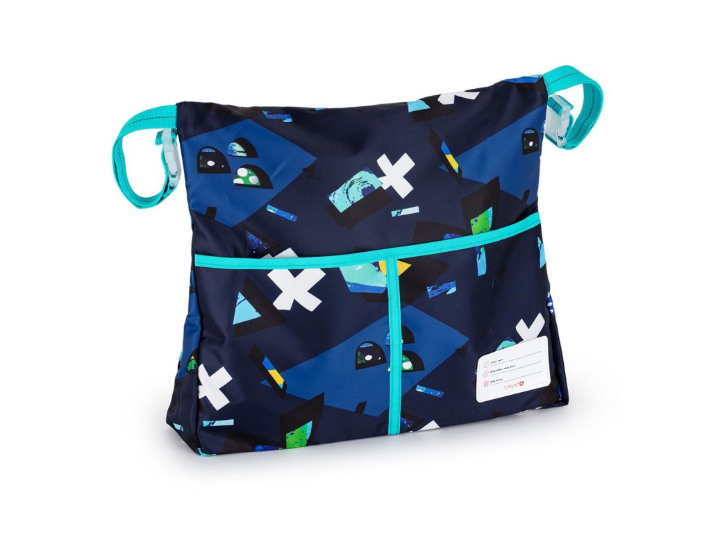 Jedno veľké a dve menšie vrecká sú určené na uschovanie drobností každého školáka (vodové farby a iné školské pomôcky). Horné veľké vrecko je uzatvárateľné na zips, dve bočné vrecká sú voľne prístupné. Vrecko je opatrené menovkou a popruhmi s prackami pre uchytenie k lavici.