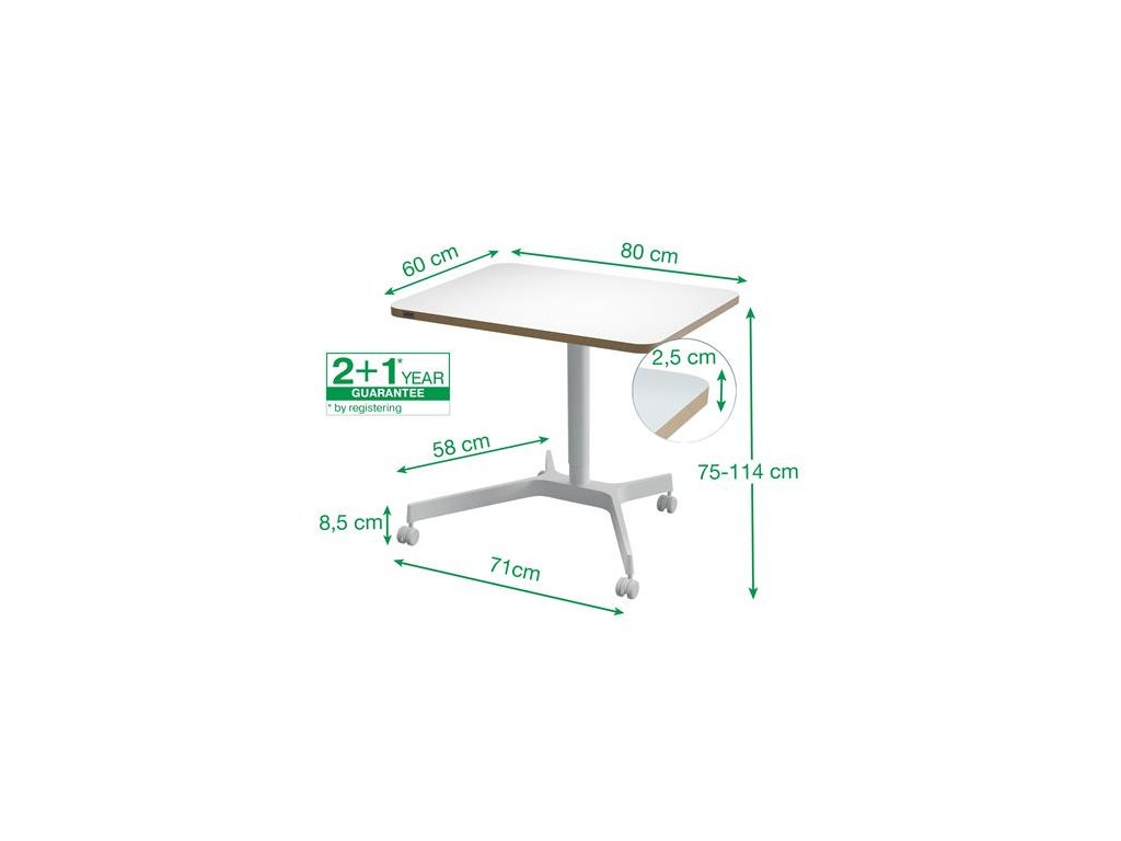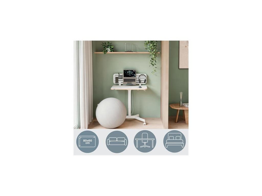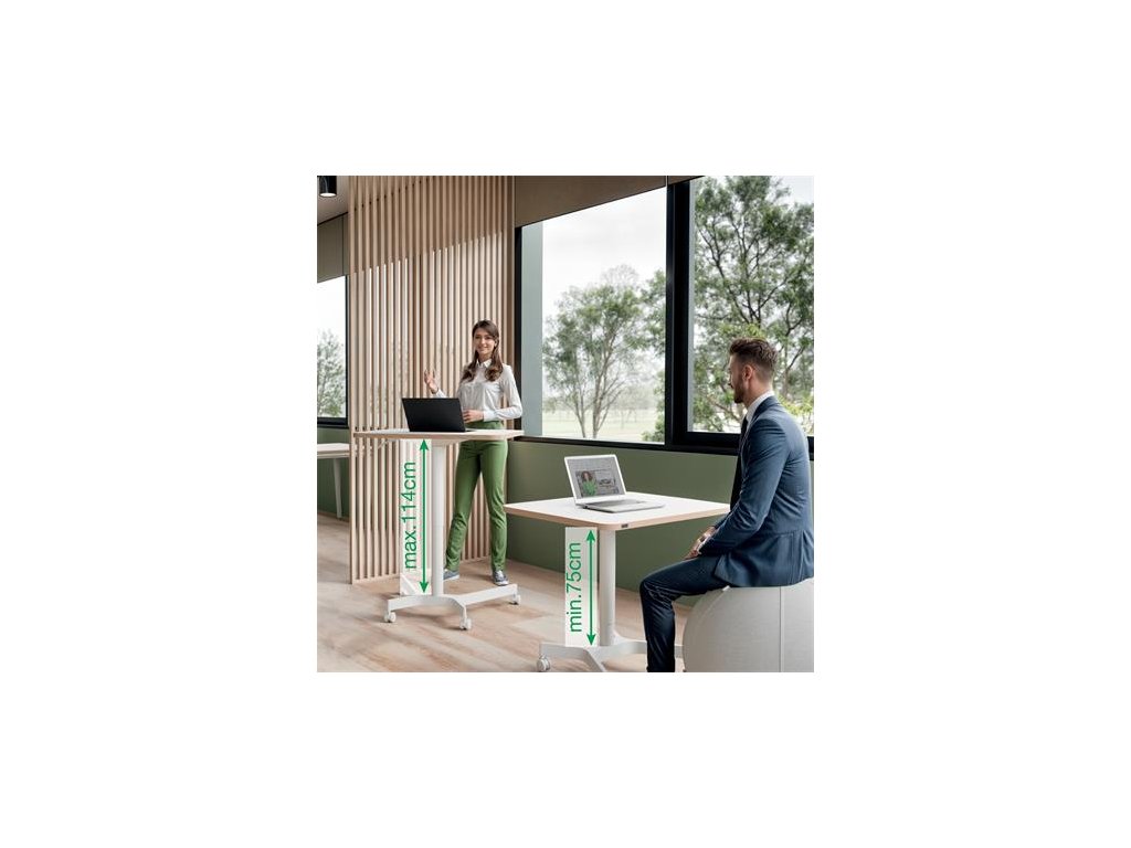 Kompaktný a štýlový mobilný zdvíhací stôl na miesta s obmedzeným priestoromĽahké prepínanie medzi sedením a státím podporuje pohyb a precvičenie svalov, čím pozitívne ovplyvňuje pocit pohody pri práci.