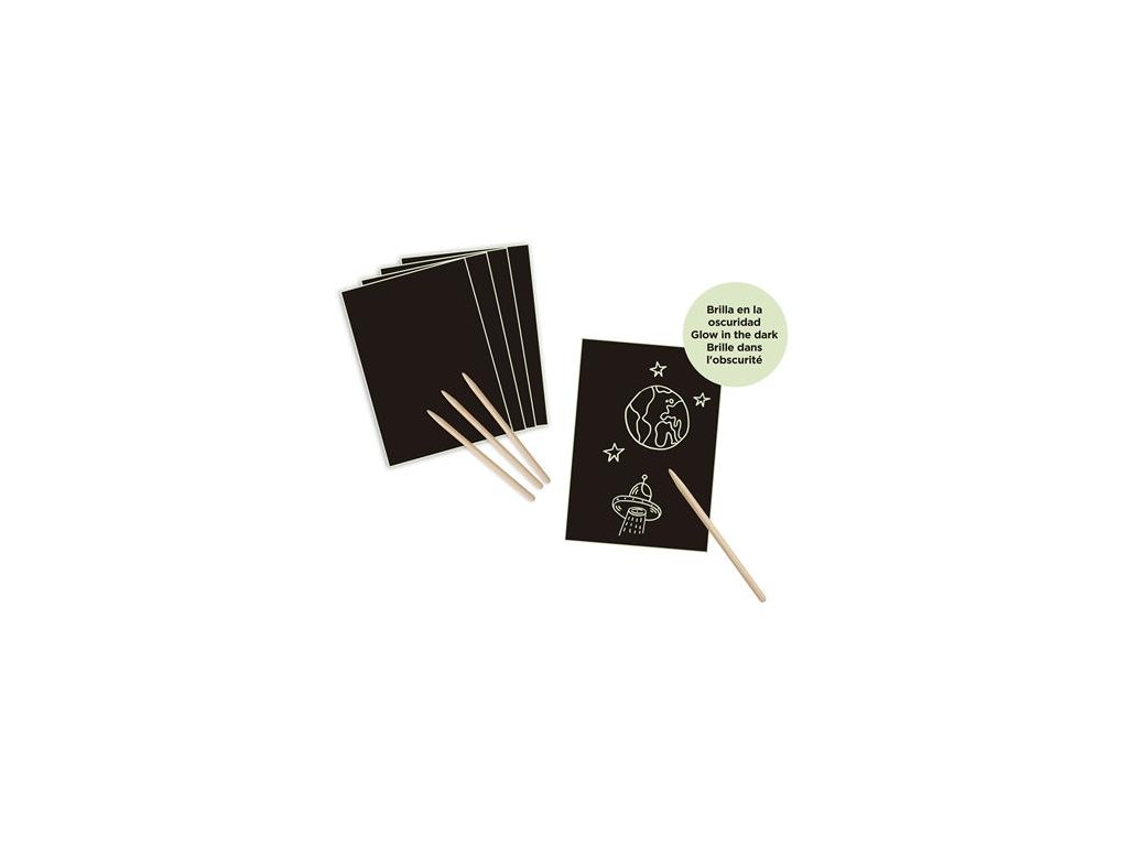 Popustite uzdu svojej fantázie s touto magickou, svietiacou súpravou na vyškrabávanie obrázkov. - možno vytvárať jedinečné vzory - pre deti je naozaj vzrušujúce, ako sa vzory v tme rozsvietia (predtým je potrebné naplniť hárky svetelným zdrojom) - výborne sa hodí na domáce a školské použitie - sada obsahuje 8 stieracích hárkov (A4 ) a obsahuje 4 drevené tyčky -odporúčaný vek: 4+Dodatočné parametre