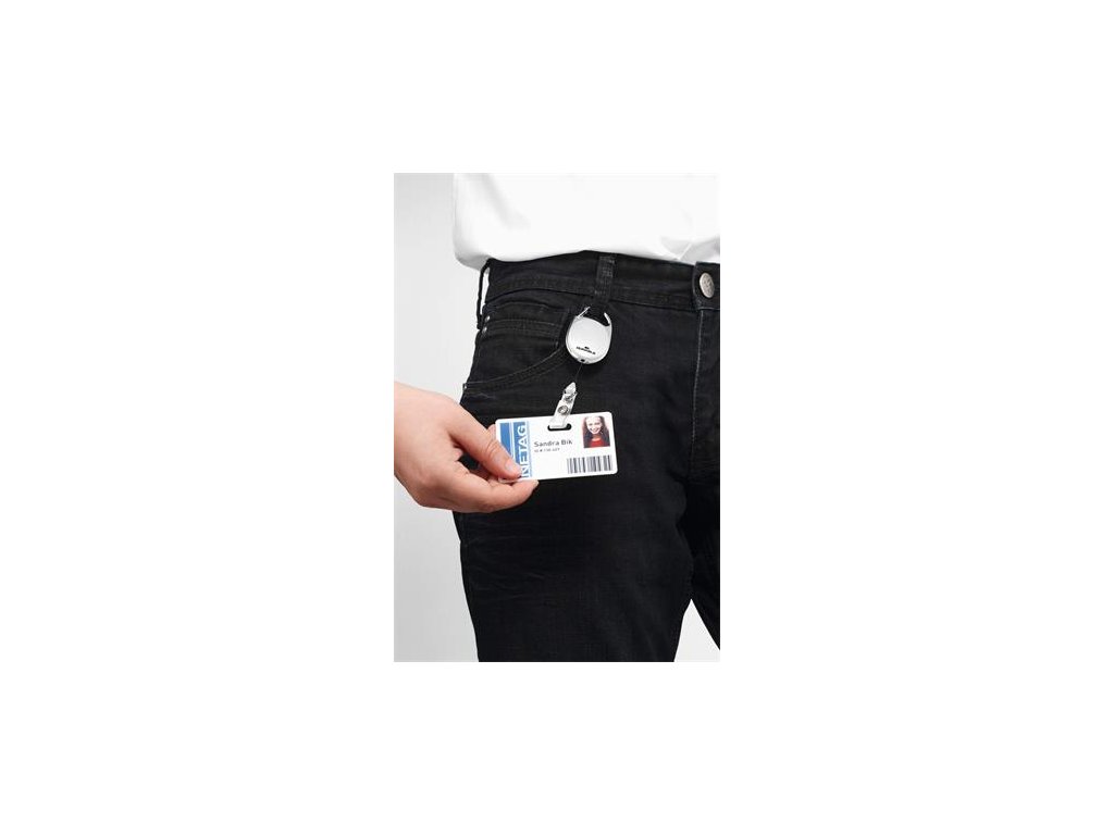 - štýlový oválny vysúvací kotúč s možnosťou vysunutia do 80 cm a kovovým klipom na rubovej strane - vhodný na uchytenie všetkých visačiek značky DURABLE s perforáciouDodatočné parametre