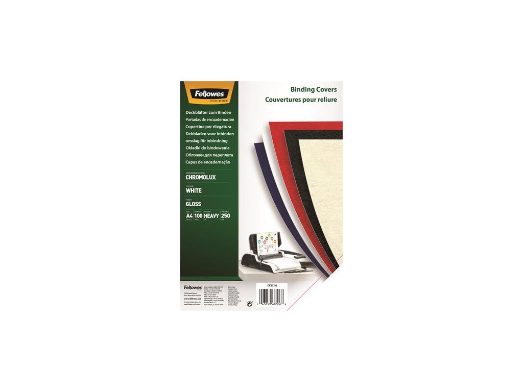 Zadný obal ku špirálovej väzbe, A4, 250 g, lesklý, FELLOWES "Chromolux", biela