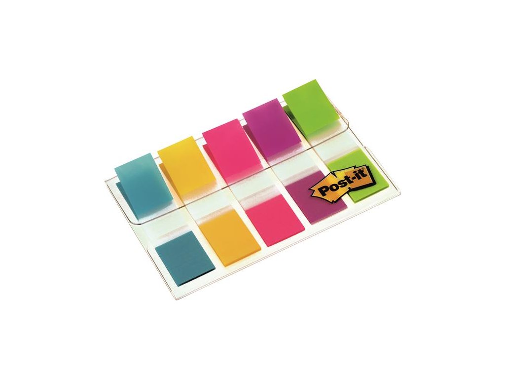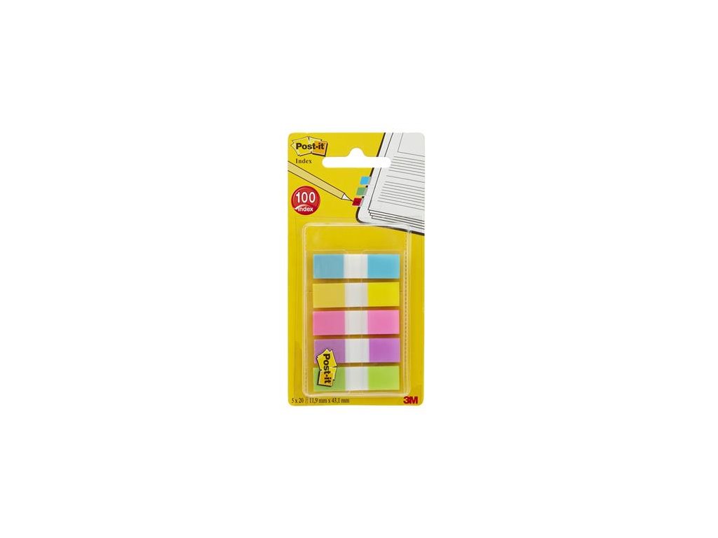Záložka, plastová, 5x20 listov, 12x43 mm, 3M POSTIT, mix farieb