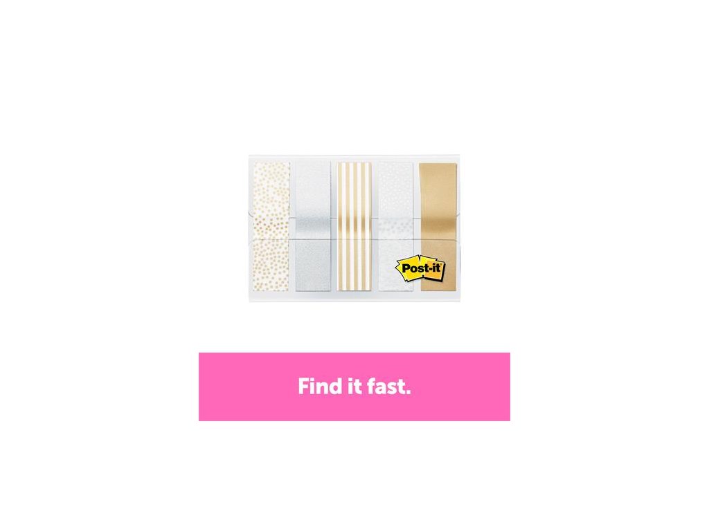 Záložka, plastová, 5x20 záložiek, 11,9x43,2 mm, 3M POSTIT, kovové odtiene