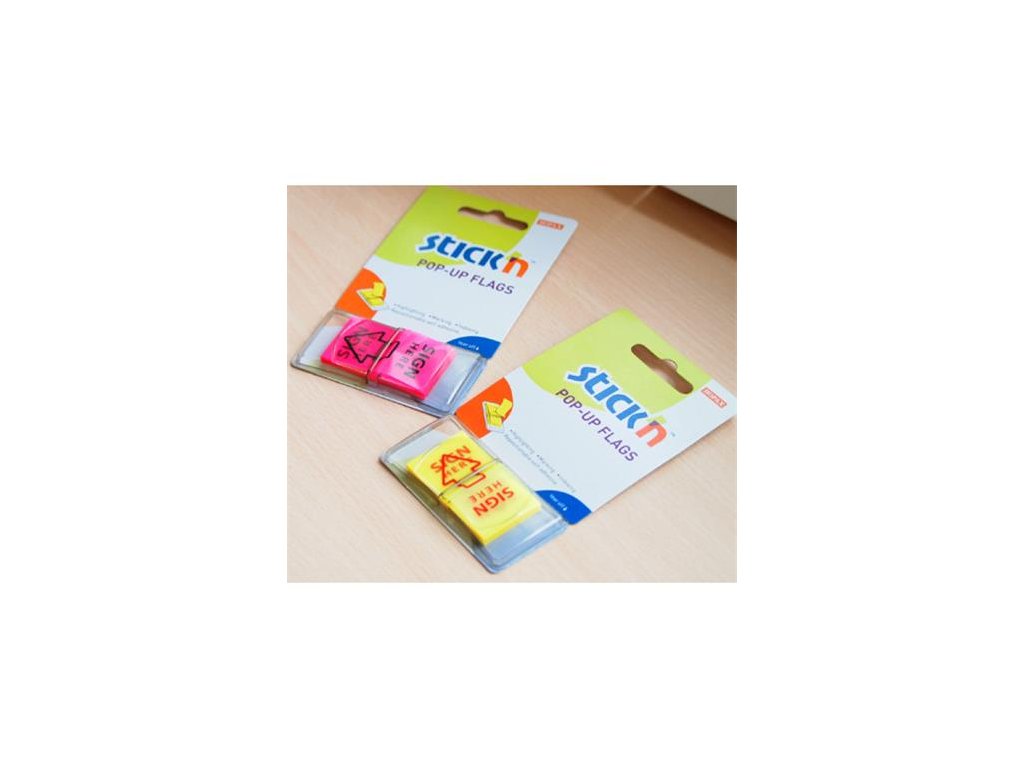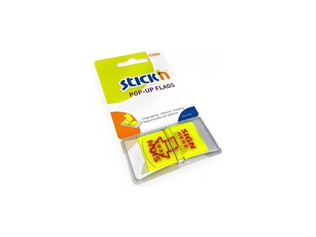 Záložky, 50 listov, 45x25 mm, STICK N „Sign Here“, podpis, neónová žltá