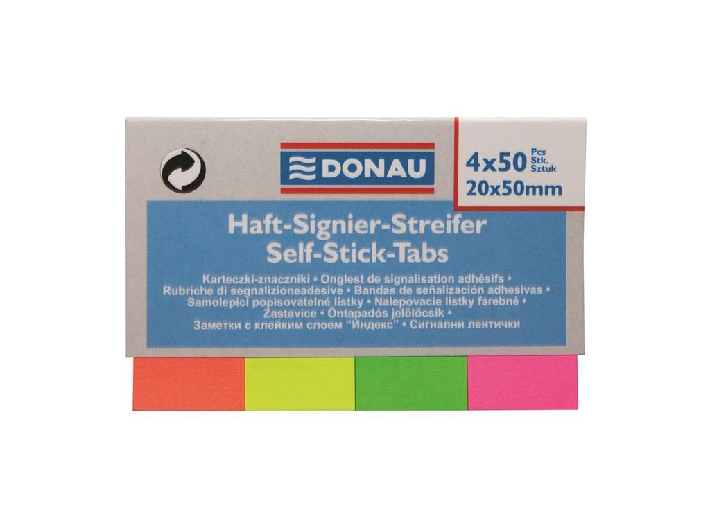 Záložky, papierové, 4x50 listov, 20x50 mm, DONAU, rôzne farby