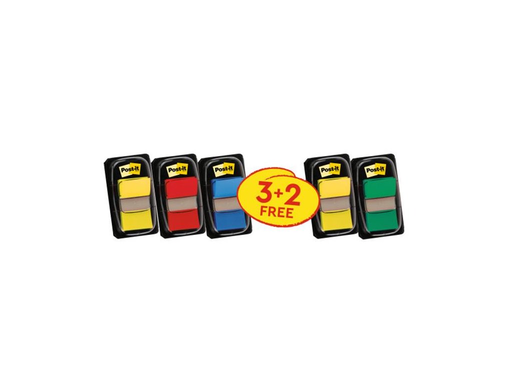 Záložky, plastové, 3+2x50 záložiek, 25x43 mm, 3M POSTIT, mix