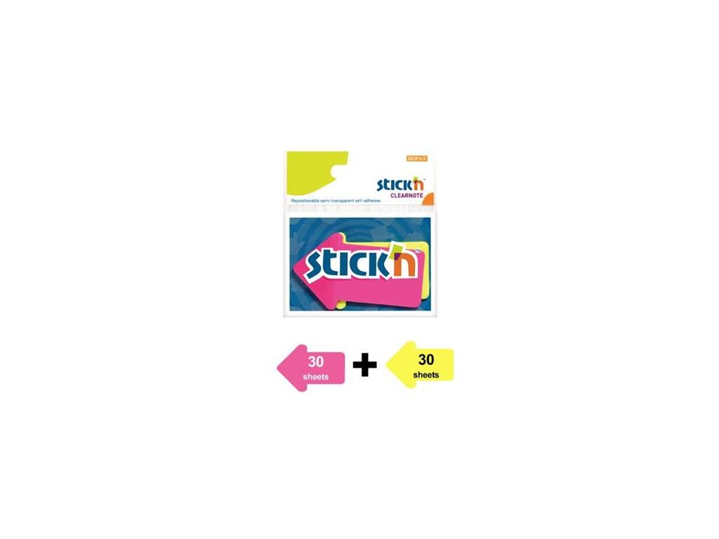 Záložky, šípka, plastové 2x30 listov, 76x50mm, STICK N, neónové farby