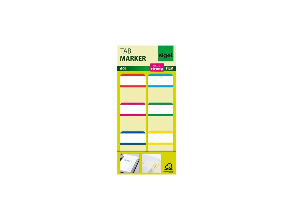 Záložky, spevnené, biele okraje, 25x38 mm, 6x10 ks, SIGEL, mix farieb