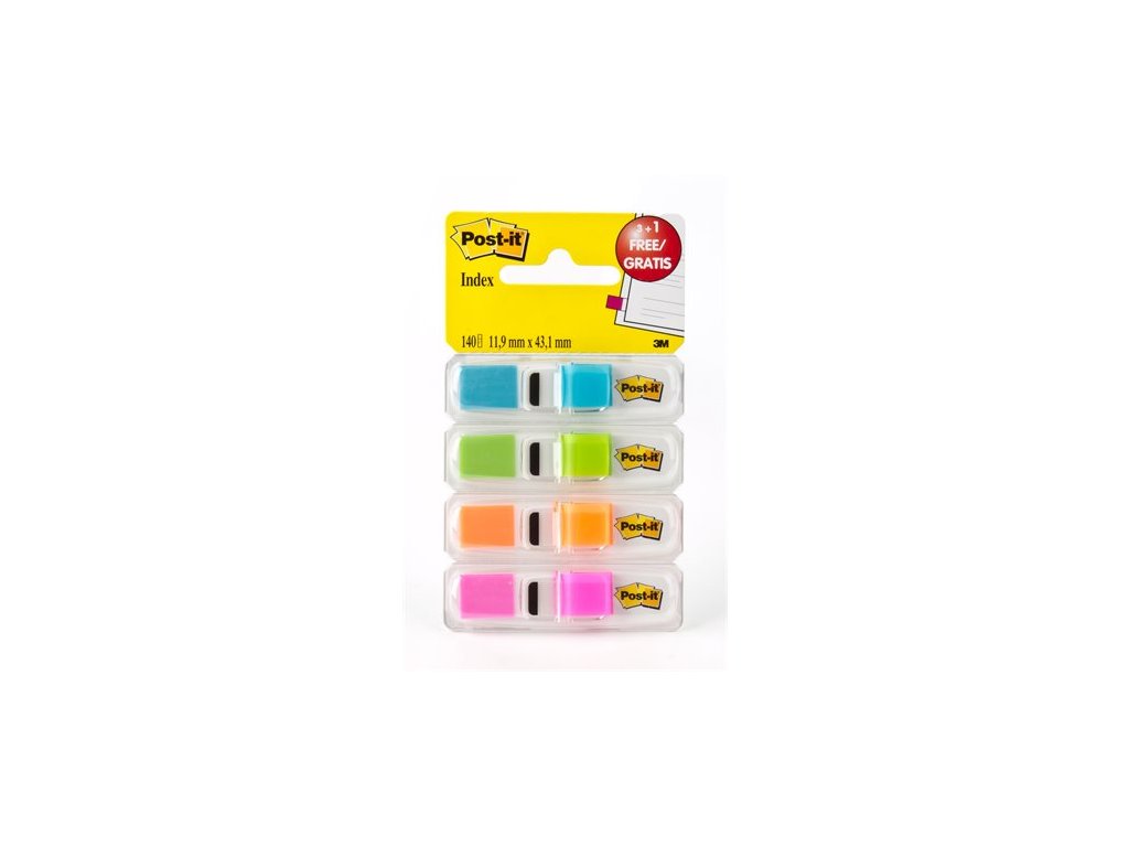 Záložky v dávkovači, plastové, 4x35 listov, 12x43 mm, 3M POSTIT, živé farby