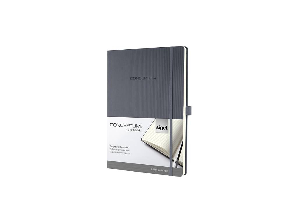Zápisník, exkluzívny, A4, linajkový, 97 strán, tvrdá obálka, SIGEL "Conceptum", tmavosivá