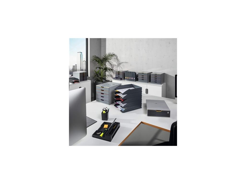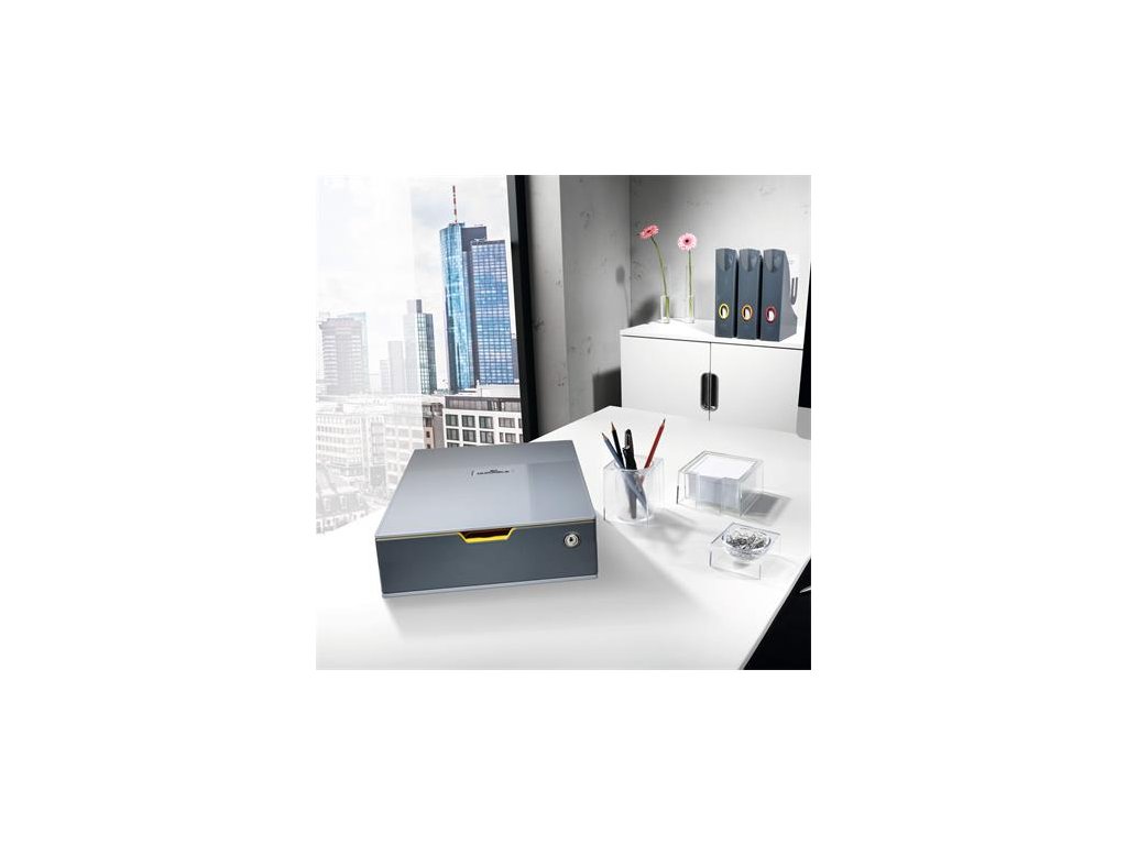 - samostatne uzamykateľná zásuvka pre zásuvkový box Varicolor Safe - moderný dizajn - farebne odlíšené zásuvky pre lepšiu organizáciu dokumentov - zásuvka formátu XXL, ktorá zabezpečuje extra veľký úložný priestor: 24,7 x 7,7 x 33 cm - box s cylindrickou vložkou, ideálne na ukladanie dôverných dokumentov alebo osobných predmetov - vyrobený z plastu prvotriednej kvality - zásuvky sa otvárajú ľahko a ticho - pre formáty A4, C4 a obálky - stohovateľný, s protišmykovými nožičkami - rozmery: 280 x 95 x 356 mmDodatočné parametre