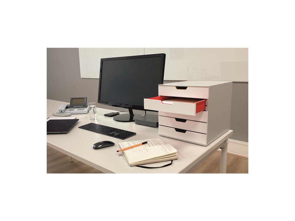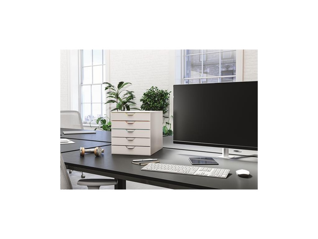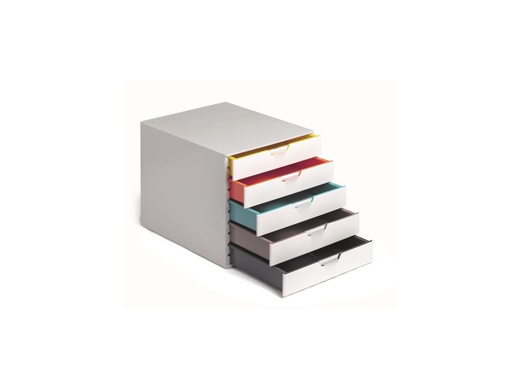 - elegantný, inovatívny zásuvkový box, 5 farebných zásuviek - z plastu prémiovej kvality - farebne odlíšené zásuvky pre lepšiu organizáciu dokumentov - zásuvky sa otvárajú ľahko a ticho - zásuvky sú zabezpečené proti vypadnutiu - pre formáty A4, C4 a obálky - dodávané s priehľadnými plastovými indexami na označenie obsahu - boxy sú stohovateľné - materiál najkvalitnejší ABS plast, spodná strana s protišmykovou ochranou - rozmery: 292 × 280 × 356 mm (š × v × h)Dodatočné parametre