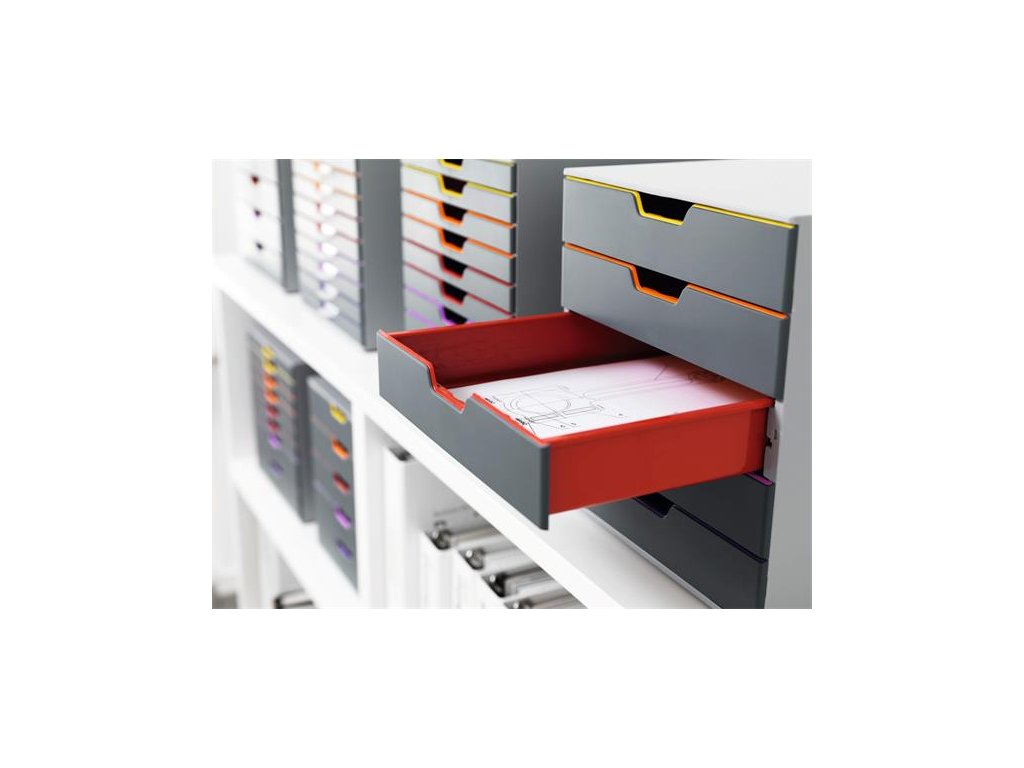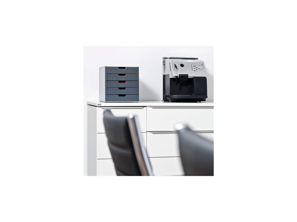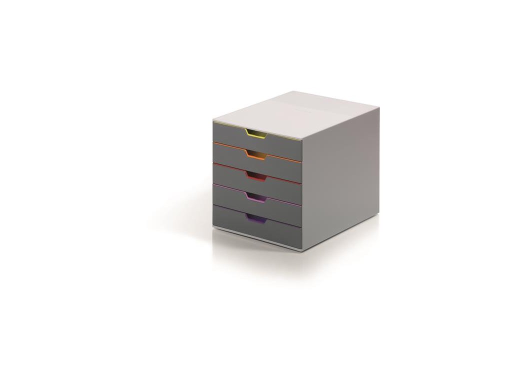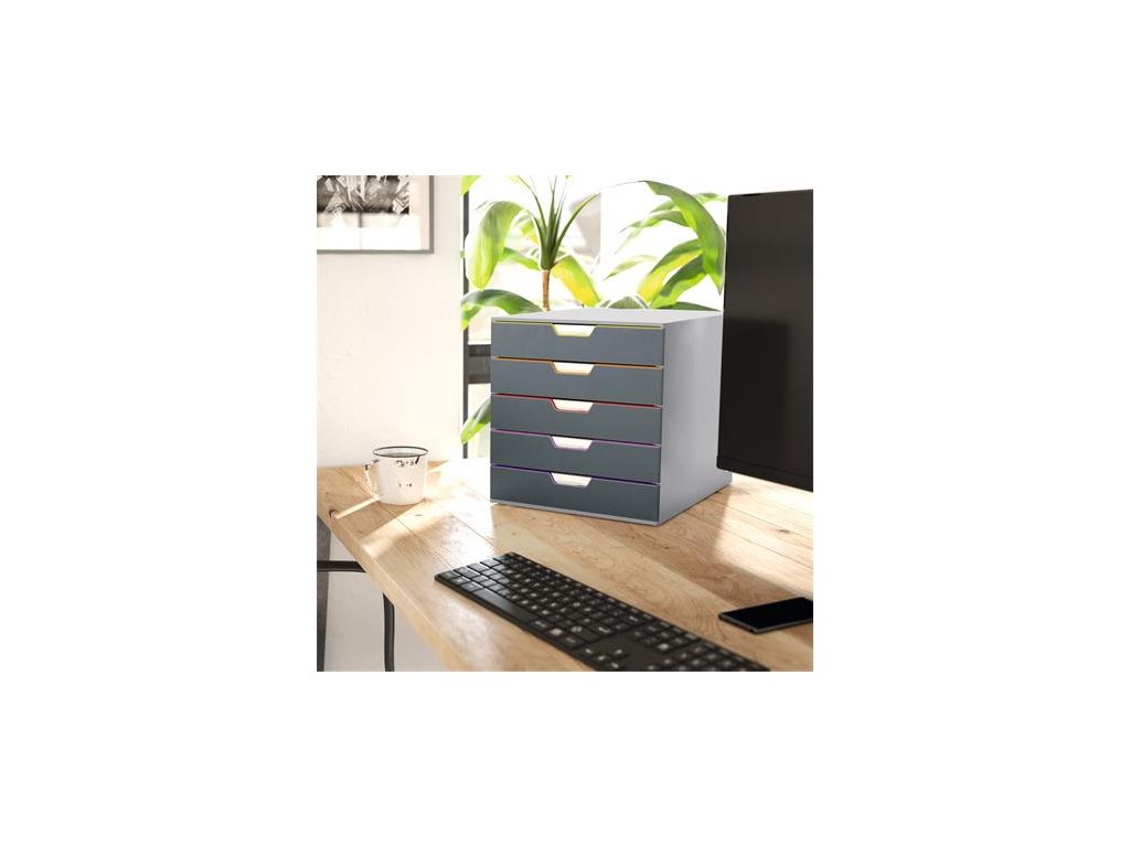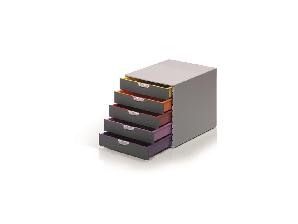 - elegantný, inovatívny zásuvkový box, 5 farebných zásuviek - z plastu prémiovej kvality - farebne odlíšené zásuvky pre lepšiu organizáciu dokumentov - zásuvky sa otvárajú ľahko a ticho - zásuvky sú zabezpečené proti vypadnutiu - pre formáty A4, C4 a obálky - dodávané s priehľadnými plastovými indexami na označenie obsahu - boxy sú stohovateľné - materiál najkvalitnejší ABS plast, spodná strana s protišmykovou ochranou - rozmery: 292 × 280 × 356 mm (š × v × h)Dodatočné parametre